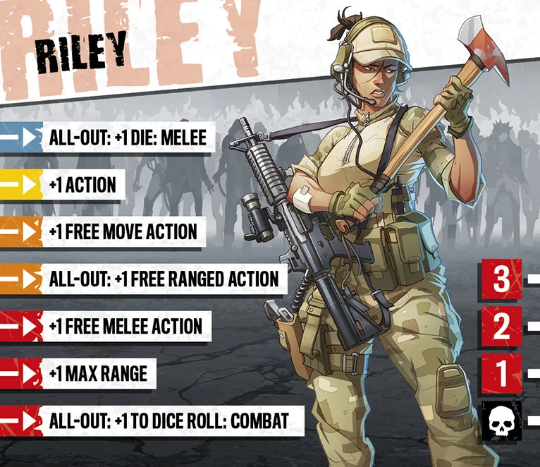 Riley was born and raised at a time where hyperactivity was considered as just being a brat. In the end, Riley found the US Army to be the best place for her, as she could turn her energy into a brilliant career by jumping into action, anywhere, anytime, and going farther than anyone else. She played a major role in helping Javier and Karl escape zombie swarms, and stuck with them ever since. Her life is even happier since she’s a survivor: an entire zombie army is not enough to divert her from her objectives.