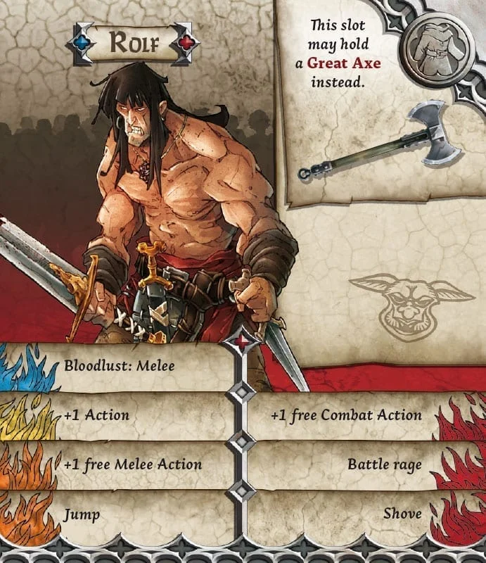 Too impulsive to be a good farmer, and too unruly to become a good soldier, Rolf chose the path of the orc hunters. Along with other hot-headed young men, he watched over the border with the orcish lands to prevent any raid, and punish trespassers. Without surprise, the orc hunters’ lifespan was expected to be quite short. Rolf, however, was skilled and lucky enough to survive a few battles and learn about his foes. In more than one way, he felt akin to the bloodthirsty and savage orcs, more than he did to the cowardly and treacherous humans.