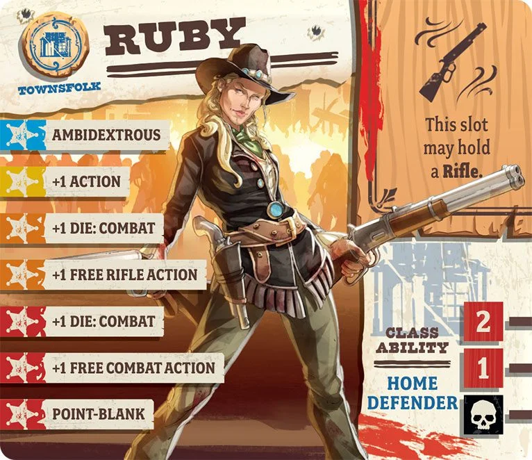 Ruby’s gang has terrorized the West for nearly a decade, robbing stages, trains, banks, and anyone who got in their way. The saving grace was that bloodshed was rare, what with Ruby’s planning skills more like those of a general than an outlaw. Perfect timing and precision mark all of her heists, and if a little gunplay is involved, Ruby herself is a crack shot with few equals. Like most outlaws she’s had to throw in with the other survivors to stay alive, earning herself a bit of respectability along the way.