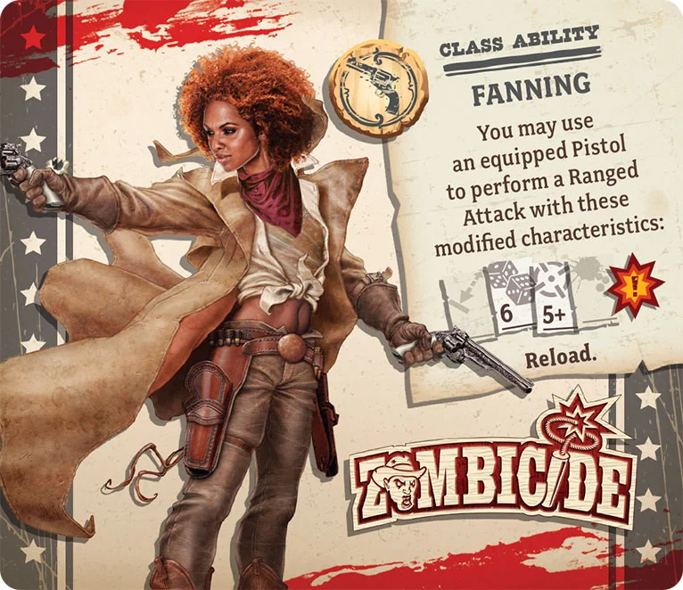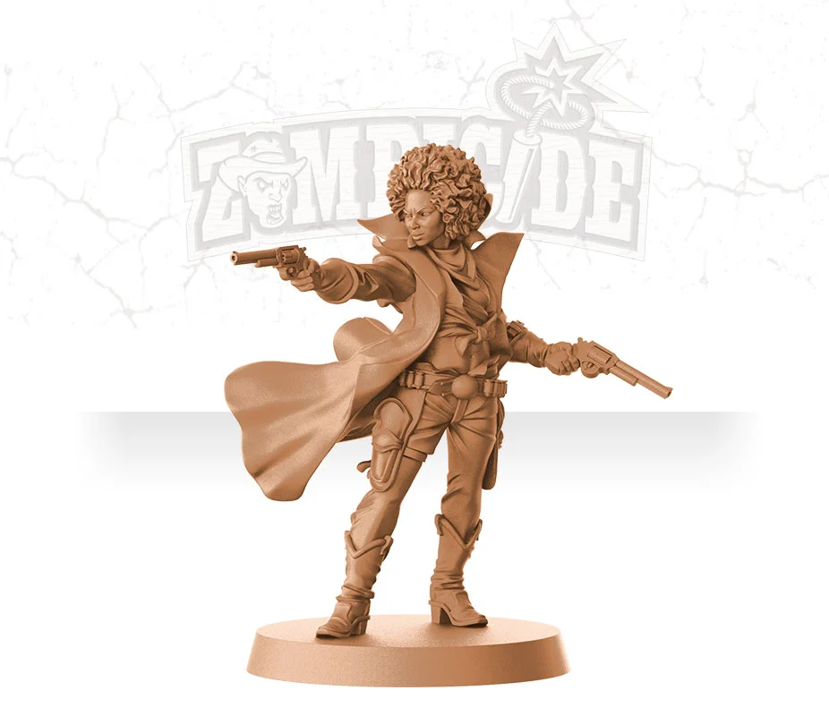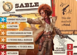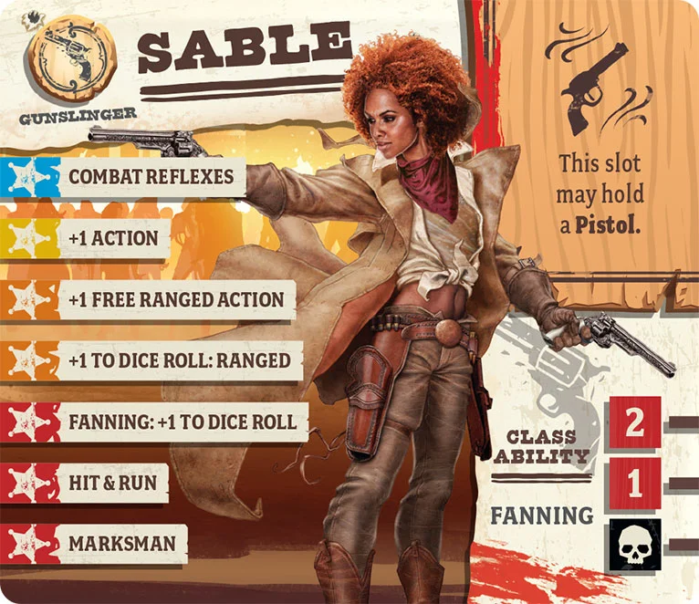 Sable is one of the most famous bounty hunters west of the Mississippi, so much so that cornered bandits had an even chance of going along quietly rather than more violent options. Her handiwork with paired six-shooters is the stuff of legend, as the piles of bodies in her wake will attest. She rarely works with partners, as they usually just get in her way, but since the zombies began walking, she’s learned to get along with the other survivors.