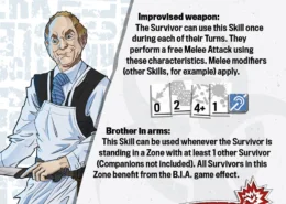 Frasier Stylus and Joe Clerk are best friends whose businesses were right next to each other until the apocalypse destroyed it all. Stylus’s carpentry shop specialized in breadboxes and Clerk’s bakery specialized in bread. It might seem an oddly specific pairing for otherwise unrelated businessmen, but it worked wonderfully for years until the zombies destroyed everything. Now they travel the country helping out where they can, and surviving as needed. Stylus’s skills can build more than breadboxes and Clerk can cook more than bread. They do miss the old days though.