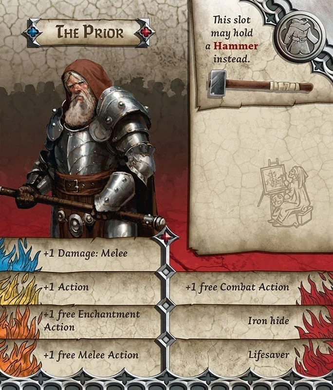 It was the Prior that first identified the young Ruff as a descendant of a line of kings called the Ghanor. The Prior considers Ruff a gift from Saint Arnold himself, and with Ruff’s astounding powers, the Prior knew Ruff would be the one to defeat the tyrant dragon Zamir. Although the Prior’s past has been clouded in mystery, he eventually opened up to Ruff, revealing that he was half-hobgoblin, and had once been a warrior in Zamir’s brutal army. It was this experience that convinced the Prior that destroying Zamir would be his life’s mission.
