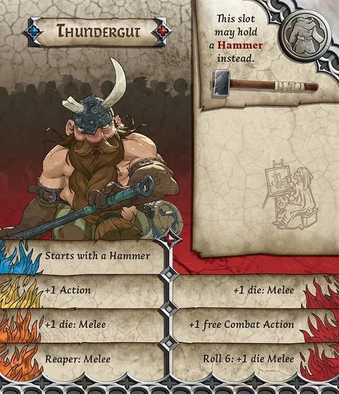 Thundergut was not the sort of dwarf known for his fighting prowess. He was a hero in the bar, the king of the keg, the baron of beer, a pub fighter, and a nasty drunk. But with a hammer? No. He lost his leg in a mine accident when he was a young dwarf, and has been drinking his woes away for all the long years since. But now, with the zombie menace washing over the lands, they need every dwarf that can still stand up. As long as he’s partially sober, Thundergut counts.