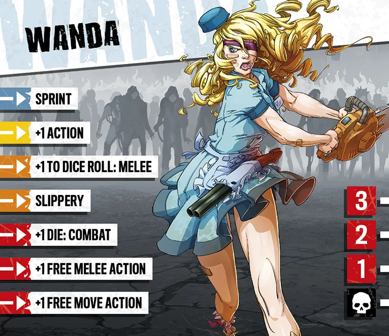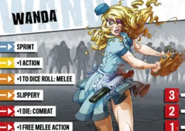 Wanda was a waitress in a retro drive-in, scooting around and delivering meals to people who, in the best case, didn’t bother to acknowledge her presence. That is, until they all turned into zombies, and she became the main course. Wanda used her wits and roller skates to escape them. At first, she enjoyed total freedom, but soon wanted to do more. She met other survivors, and joined them to repel the invasion. Just wait until she puts her hands on a chainsaw, and finds her infected boss!