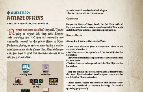 QuestA Maze of KeysGuillotine GamesThe Maze of Keys is infamous for its allure of treasure, but also that no adventurers come out alive! But we need that treasure to continue our fight against zombies. PDF 25 September 2020 https://cdn.svc.asmodee.net/production-zombicide/uploads/image-converter/2020/09/Mission_B29_A_Maze_of_Keys.webp 641 495 Thorn https://cdn.svc.asmodee.net/production-zombicide/uploads/2021/11/logo-zombicide-r2.png Thorn2020-09-25 09:00:332020-09-25 12:45:13A Maze of Keys
