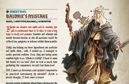 QuestBaldric’s MistakeGuillotine GamesHere’s the thing about healing potions and spells… If you mess them up, you raise the undead instead of healing the wounded. Now, Baldric needs to find Nelly and escape with the ingredients before it’s too late. PDF 8 April 2022 https://cdn.svc.asmodee.net/production-zombicide/uploads/image-converter/2022/04/Mission_B45_Baldrics_Mistake.webp 641 495 Thorn https://cdn.svc.asmodee.net/production-zombicide/uploads/2021/11/logo-zombicide-r2.png Thorn2022-04-08 10:50:152022-04-08 10:50:15Baldric’s Mistake