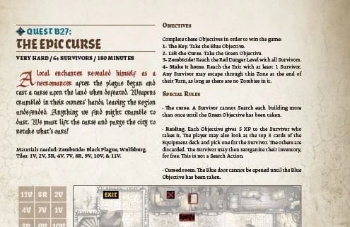 QuestThe Epic CurseGuillotine GamesOn top of the plague, this village has also been cursed by a necromancer. Weapons just fall apart, making it impossible to even try to defend the town. We have to lift the curse if we want to have a chance! PDF 7 August 2020 https://cdn.svc.asmodee.net/production-zombicide/uploads/image-converter/2020/08/Mission_B27_The_Epic_Curse.webp 641 495 Thorn https://cdn.svc.asmodee.net/production-zombicide/uploads/2021/11/logo-zombicide-r2.png Thorn2020-08-07 09:00:172020-09-11 09:20:26The Epic Curse