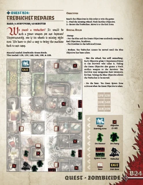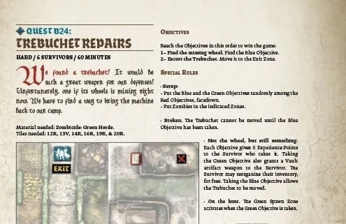 QuestTrebuchet repairsGuillotine GamesWe found a trebuchet! Such a great weapon, it is sure to help our defenses back in the camp… Except it’s broken. Quick, we need to find the wheel before we get eaten alive! PDF 22 May 2020 https://cdn.svc.asmodee.net/production-zombicide/uploads/image-converter/2020/05/Mission_B24_Trebuchet_Repairs.webp 641 495 Thorn https://cdn.svc.asmodee.net/production-zombicide/uploads/2021/11/logo-zombicide-r2.png Thorn2020-05-22 11:06:022020-05-22 11:06:02Trebuchet repairs